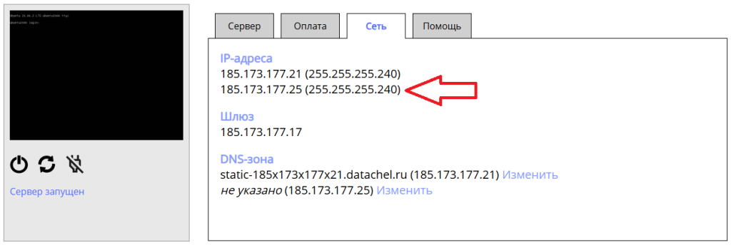 В данной статье будет рассказано как добавить дополнительный публичный IP-адрес на сервер Debian или Ubuntu Server. Прежде всего, вам необходимо приобрести дополнительный IP-адрес (Услуга платная! Стоимость дополнительного IP-адреса 150 рублей в месяц). Когда вы это сделаете, в вашем личном кабинете в настройках сети вашего сервера появится дополнительный адрес.