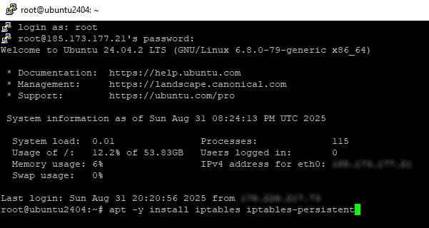 apt -y install iptables iptables-persistent