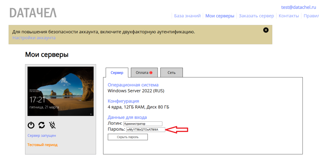 Однако для повышения безопасности настоятельно рекомендуется сменить пароль. Для начала подключитесь к серверу через удалённый рабочий стол (смотреть эту статью).